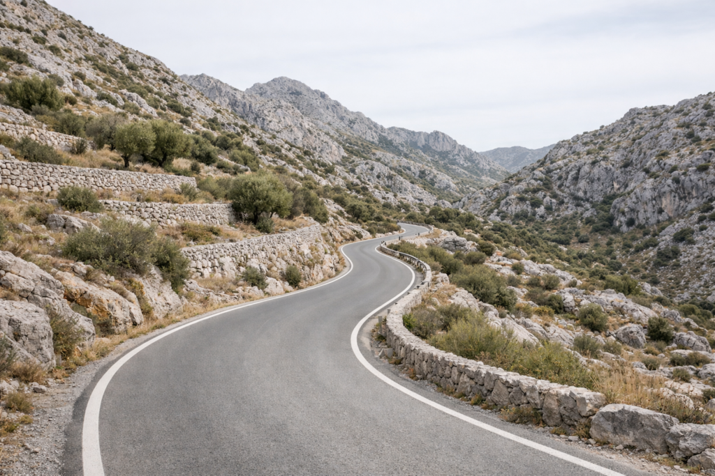 The inland Tramuntana roads are not dramatic at first glance. They don’t announce themselves with cliffs or viewpoints. What they offer instead is continuity:
